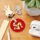 The flag of the Isle of Man, or flag of Mann (Manx: brattagh Vannin), is a triskelion, composed of three armoured legs with golden spurs, upon a red background. It has been the official flag of Mann since 1931 and is based on the Manx coat of arms, which dates to the 13th century. The three legs are known in Manx as ny tree cassyn ("the three legs"). The triskelion is an ancient symbol, used by the Mycenaeans and the Lycians. It is not known for certain why the symbol was originally adopted on the Isle of Man. Before its adoption in 1931, the official flag of the Isle of Man was the Union Flag. There is also a civil ensign for the Isle of Man. This flag was first authorised on 27 August 1971. Another Manx flag is the flag of the Tynwald, which has flown outside the Legislative Buildings since 1971.