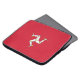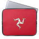 This design features the flag of the Isle of Man (brattagh Vannin), which is composed of three armoured legs with golden spurs upon a red background. It has been the official flag since 1932 and is based on the Manx coats of arms, which dates back to the 13th century. The usage of a triskelion was very popular with Scandanavian cultures, and the symbol may have been introduced to the Isle by the Norsemen. The capital and largest city of the Isle of Man is Douglas.