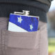 The flask itself is fine. It’s a cheap flask, obviously bought in bulk, however am prepared to overlook that. Given that it is a personalized item, I would have liked to have seen gift boxing instead of the generic packaging. Terrible printing, and/or quality. It’s a cheap, tacky vinyl. It is not cut straight and is also applied in a way that it is overhanging the bottom, causing the glue to catch on items and it will eventually roll and tear, damaging the wrap.