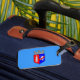 Luggage Tag with design with flag of Tirana, capital city of Albania, blue flag with coat of arms