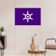 This is the flag of the Tokyo Prefecture, a representation of the metropolis itself. The monsho (crest) represents a sun radiating, with the circle in the very middle representing Tokyo (as the centre of Japan). It is placed upon a purple background (Edo purple), the colour denoting a royal & traditional feel to it.