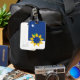 Luggage Tagwith a design with the flag of Topeka, Kansas. A blue and white flag with a yellow star symbol