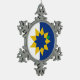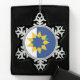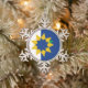 Snowflake Ornament with a design with the flag of Topeka, Kansas. A blue and white flag with a yellow star symbol