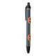 Pen with a design with the flag of Tulsa, Oklahoma. A beige and navy blue flag with a gold Osage shield containing a red circle and a beige six-pointed star