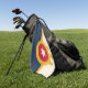 Golf Towel with a design with the flag of Tulsa, Oklahoma. A beige and navy blue flag with a gold Osage shield containing a red circle and a beige six-pointed star