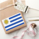 The national flag of Uruguay (Pabellón Nacional) has a field of nine equal horizontal stripes alternating white and blue. The canton is white, charged with the Sun of May, from which 16 rays extend, alternating between triangular and wavy. The flag was first adopted by law on December 16, 1828 and had 17 stripes until July 11, 1830, when a new law reduced the number of stripes to nine. The flag was designed by Joaquín Suárez