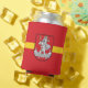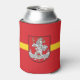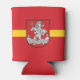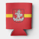 Can Cooler with design with flag of Vilnius, capital city of Lithuania; red flag with yellow stripe and coats of arms with two golden lions holding a shield in the centre