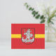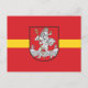 Postcard with design with design with flag of Vilnius, capital city of Lithuania; red flag with yellow stripe and coats of arms with two golden lions holding a shield in the centre