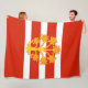 Fleece Blanket with design with a flag of historic county of Westmorland, in England, Great Britain; white and red striped flag with golden heraldic apple tree in the centre