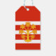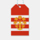 Price Tag with design with a flag of historic county of Westmorland, in England, Great Britain; white and red striped flag with golden heraldic apple tree in the centre
