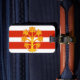 Luggage Tag with design with a flag of historic county of Westmorland, in England, Great Britain; white and red striped flag with golden heraldic apple tree in the centre