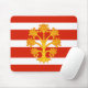 Mousepad with design with a flag of historic county of Westmorland, in England, Great Britain; white and red striped flag with golden heraldic apple tree in the center