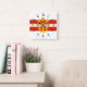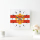 Wall Clock with design with a flag of historic county of Westmorland, in England, Great Britain; white and red striped flag with golden heraldic apple tree in the centre