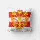 Throw pillow with design with a flag of historic county of Westmorland, in England, Great Britain; white and red striped flag with golden heraldic apple tree in the centre