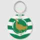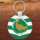 Keychain with design with a flag of historic county of Wiltshire, in England, Great Britain; white and green flag with angled stripes and great bustard in the centre