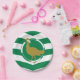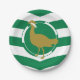 Paper plate with design with a flag of historic county of Wiltshire, in England, Great Britain; white and green flag with angled stripes and great bustard in the centre