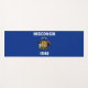 This design features the state flag of Wisconsin, which is located in the Midwest and Great Lakes regions of the United States. It is bordered by Minnesota to the west, Iowa to the southwest, Illinois to the south, Lake Michigan to the east, Michigan to the northeast and Lake Superior to the north. The state capital of Wisconsin is Madison, and its largest city is Milwaukee. The state is one of the nation's leading dairy producers and is known as "America's Dairyland". It is also known as the "Badger State". The state flag of Wisconsin features the state's coat of arms on a blue background; it also shows text containing the name of the state and the year 1848, which was the year that Wisconsin was admitted to the Union.