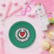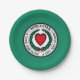 Paper plate with flag of city of Worcester, Massachusetts; green flag with white emblem with red heart in the centre