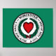 Poster with flag of city of Worcester, Massachusetts; green flag with white emblem with red heart in the centre