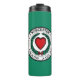 Tumbler with flag of city of Worcester, Massachusetts; green flag with white emblem with red heart in the centre