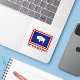The stick looks amazing. Unfortunately, it would not stick on our suitcase as it was textured. When we found a non-textured (smooth) suitcase, the sticker stuck and looks great. The printing looked awesome.