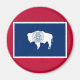 This design features the state flag of Wyoming, which is a doubly landlocked state in the western United States. It is the second most sparsely populated state in the country. Wyoming is bordered to the north by Montana, to the east by South Dakota and Nebraska, to the south by Colorado, to the southwest by Utah and to the west by Idaho and Montana. The official nickname of Wyoming is "Equality State", but it is also sometimes known as "Cowboy State" or "Big Wyoming". Wyoming's western half is mostly covered by the ranges of the Rocky Mountains, while the eastern half of the state is high-elevation prairie called the High Plains. Yellowstone national park is partially in Wyoming and Grand Teton national park is entirely within the state. Cheyenne is the state capital and the most populous city of Wyoming. The flag of the state of Wyoming includes a silhouette of an American bison. The red symbolises Native Americans and the blood of pioneers who gave their lives. The white is a symbol of purity and uprightness. The blue is the colour of the skies and distant mountains.