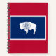 This design features the state flag of Wyoming, which is a doubly landlocked state in the western United States. It is the second most sparsely populated state in the country. Wyoming is bordered to the north by Montana, to the east by South Dakota and Nebraska, to the south by Colorado, to the southwest by Utah and to the west by Idaho and Montana. The official nickname of Wyoming is "Equality State", but it is also sometimes known as "Cowboy State" or "Big Wyoming". Wyoming's western half is mostly covered by the ranges of the Rocky Mountains, while the eastern half of the state is high-elevation prairie called the High Plains. Yellowstone national park is partially in Wyoming and Grand Teton national park is entirely within the state. Cheyenne is the state capital and the most populous city of Wyoming. The flag of the state of Wyoming includes a silhouette of an American bison. The red symbolises Native Americans and the blood of pioneers who gave their lives. The white is a symbol of purity and uprightness. The blue is the colour of the skies and distant mountains.