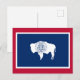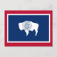 This design features the state flag of Wyoming, which is a doubly landlocked state in the western United States. It is the second most sparsely populated state in the country. Wyoming is bordered to the north by Montana, to the east by South Dakota and Nebraska, to the south by Colorado, to the southwest by Utah and to the west by Idaho and Montana. The official nickname of Wyoming is "Equality State", but it is also sometimes known as "Cowboy State" or "Big Wyoming". Wyoming's western half is mostly covered by the ranges of the Rocky Mountains, while the eastern half of the state is high-elevation prairie called the High Plains. Yellowstone national park is partially in Wyoming and Grand Teton national park is entirely within the state. Cheyenne is the state capital and the most populous city of Wyoming. The flag of the state of Wyoming includes a silhouette of an American bison. The red symbolizes Native Americans and the blood of pioneers who gave their lives. The white is a symbol of purity and uprightness. The blue is the color of the skies and distant mountains.