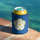 Can cooler with design with a flag of historic county of Yorkshire, in England, Great Britain; flag with a white rose on a blue field