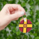 Keychain with design with a flag of historic county of Northamptonshire, in England, Great Britain; maroon flag with a gold cross and the county’s traditional rose in the centre