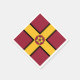 Paper napkin with design with a flag of historic county of Northamptonshire, in England, Great Britain; maroon flag with a gold cross and the county’s traditional rose in the centre