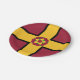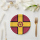 Paper plate with design with a flag of historic county of Northamptonshire, in England, Great Britain; maroon flag with a gold cross and the county’s traditional rose in the centre