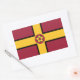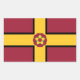 Sticker with design with a flag of historic county of Northamptonshire, in England, Great Britain; maroon flag with a gold cross and the county’s traditional rose in the centre