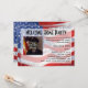 Welcome your soldier home with a party! This invitation sets the mood for a festive and patriotic homecoming welcome celebration. Army, Navy, Marine or Air Force Service Soldier Add your Soldier's photo and text online! Invite friends and family to a military welcome home party for your Army, Navy, Marines, Air Force or other Soldier with this Red white and blue waving american flag background invite.