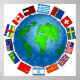 Illustration of the earth with world flags going around the outside edge representing diversity, travel etc. Image available on various gifts and products.