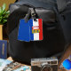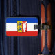 Luggage Tag with variant flag of Schleswig-Holstein; design with horizontal tricolor of red, white and blue, and with state’s coat of arms in the centre