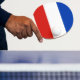 Ping pong paddle with flag of Schleswig-Holstein; design with horizontal tricolor of red, white and blue