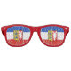 Sunglasses with variant flag of Schleswig-Holstein; design with horizontal tricolor of red, white and blue, and with state’s coat of arms in the centre