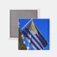 The horizontal stripes on the flag represent the nine original departments of Uruguay. The first flag designed in 1828 had 9 light blue stripes; this number was reduced to 4 in 1830 before the proclamation of the country's first Constitution. The Sun of May represents a new nation in the world.