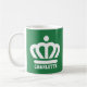 This flag of Charlotte was adopted in 1985. It may be considered a government service flag, since it is flown outside the Government Centre and its central charge appears on government vehicles. It consists of a stylised white crown centred on a green field occupying about the central three-fifths of the flag overall. Its centre forms an “M”. The crown is for unity—all city agencies cooperating for the good of Charlotte’s citizens.