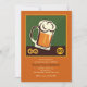 This beer mug with a frothy head and pretzel sides invitation has a round medallion for a number, initials or whatever your imagination dreams up. It's framed and backed with a burnt orange background that holds your wording. (FP)