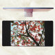 The Flamboyant, Royal Poinciana or Flame tree with its tropical orange and red flowers reaching up to a blue sky and white clouds is the inspiration of this unique and intricate desk mat design. The black branches throughout this dramatic and beautiful botanical print mat draws the eye upward through the natural abstract.