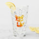 a decorative design of a little cute fox featuring orange and yellow colours on its silhouette looking like flames on a drinking glass.