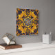 Inspired by the colours of a spring Iris blossom in rich, deep blues and warm golden tones, a mandala style abstract design.