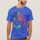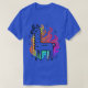 This captivating t-shirt design features a llama outlined in bold black, standing proudly with an aura of vibrant flames. The flames transition through a spectrum of warm colours, including red, orange, pink, and purple, creating a mesmerising effect. The llama itself is filled with a gradient of cool colours, including shades of yellow, green, and blue, providing a striking contrast to the fiery backdrop. The playful, wavy lines of the flames add a dynamic and energetic feel to the design, making it an eye-catching piece perfect for those who love unique and colourful fashion statements.