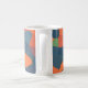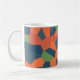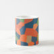 An eye-catching Coffee Mug, with an abstract pattern in vibrant colours - Flaming Orange, Midnight Blue and Deep Green, from a digital design by Judy Adamson.