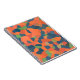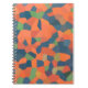 An eye-catching spiral Notebook, suitable for use as a journal, with an abstract pattern in vibrant colours - Flaming Orange, Midnight Blue and Deep Green, from a digital design by Judy Adamson