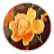 A stylised depiction of a yellow-orange rose on a dark red and orange background.