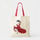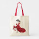 Pretty flamenco dancer in red dress with fan decorates both sides of this affordable shopping tote.