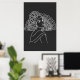 Flamenco Spanish Dancer Lady With Fan silouette art Drawing black and white poster